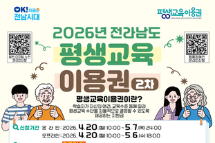 이번 2026년 2차 일반 이용권 및 노인·디지털·장애인 이용권 신청은 오는 4월 20일(월) 오전 10시부터 5월 7일(목) 자정까지 전라남도 평생교육이용권 누리집(www.lllcard.kr/jeonnam)을 통해 온라인으로 진행된다. 오프라인 신청은 5월 6일(수) 오후 6시까지 각 시군 평생교육 담당 부서에서 가능하다.
